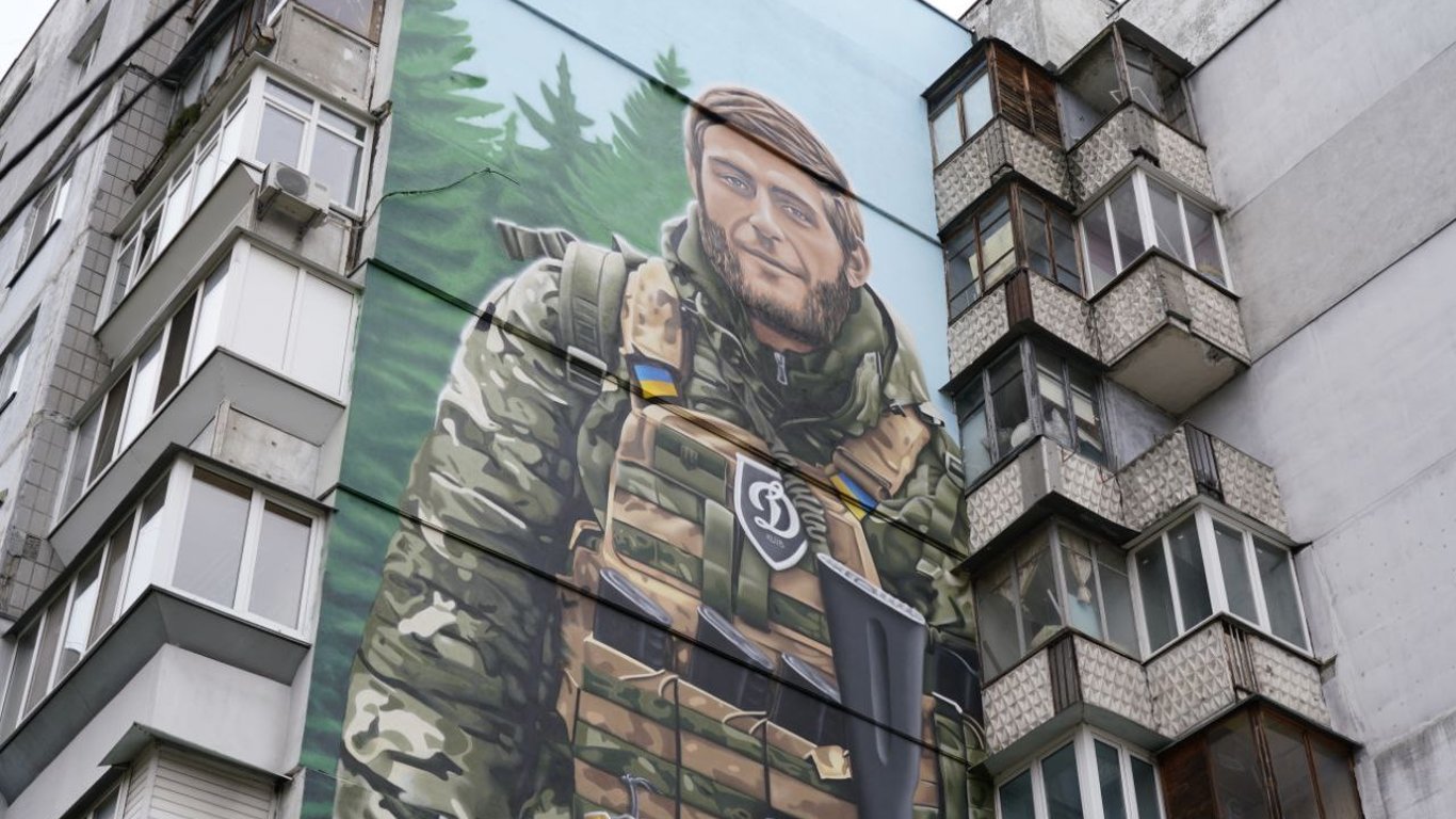 Maksym "Box" Bordus on the mural. Photo: Novyny.LIVE/ Ihor KuznetsovMural of Maksym "Box" Bordus on the building. Photo: Novyny.LIVE/ Ihor KuznetsovMural with a fallen Hero in Troyeshchyna. Photo: Novyny.LIVE/ Ihor Kuznetsov