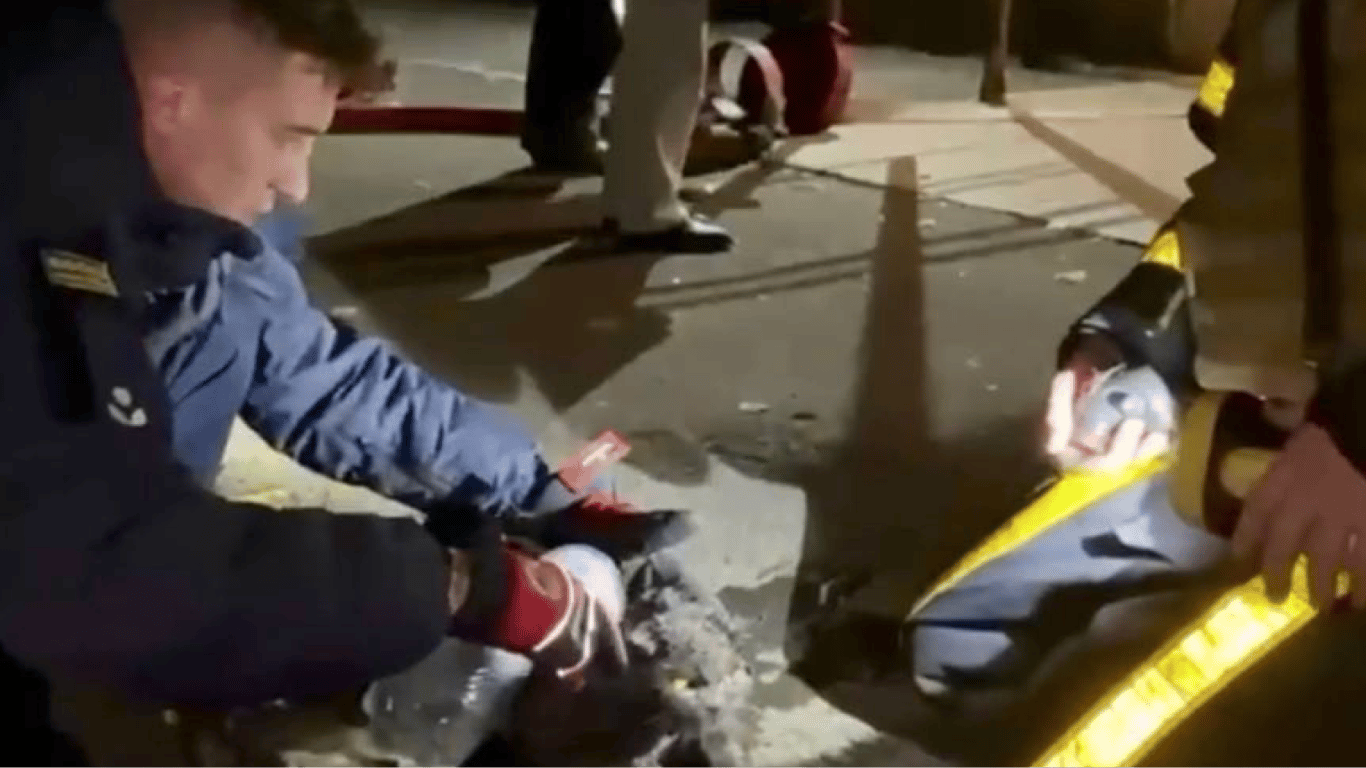 Rescuers resuscitate a cat that survived the hit in Kyiv house. Photo: screenshot