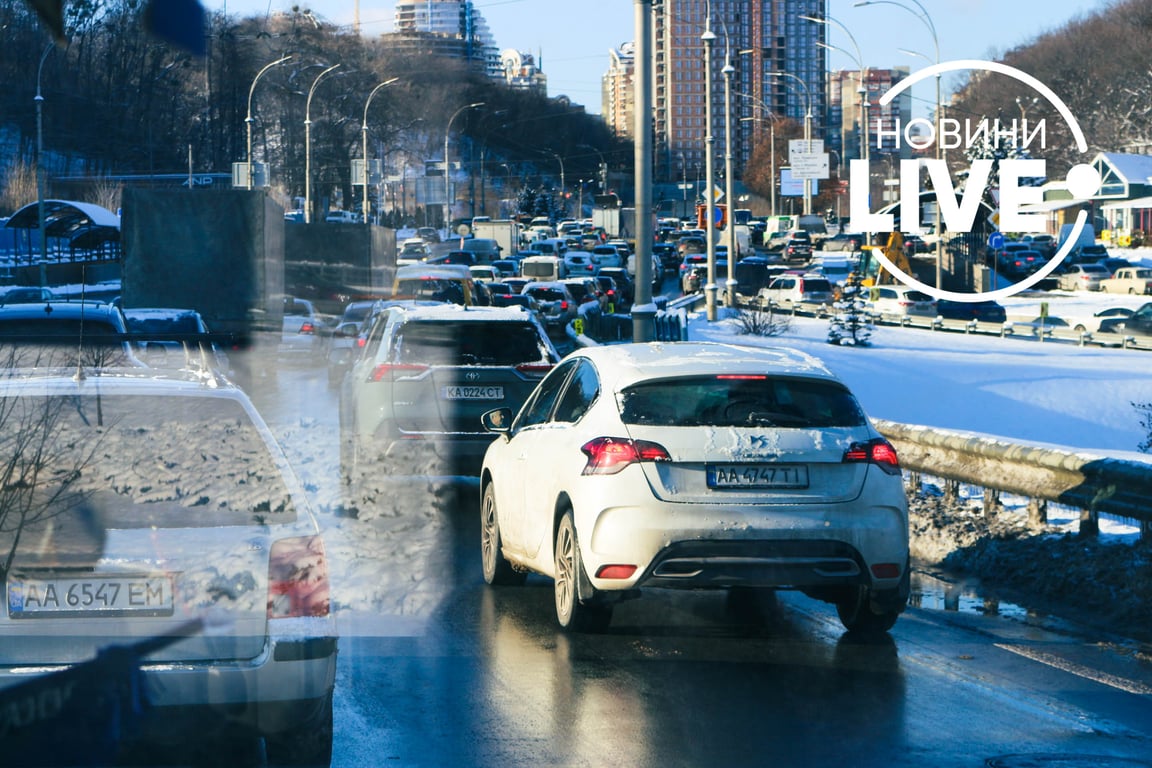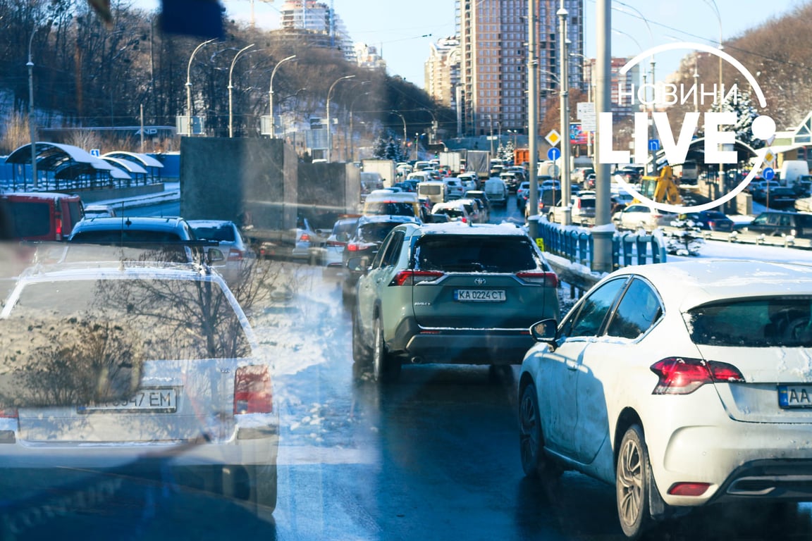 На мосту Патона заторів після опівдня теж не було, але на з'їзді автомобілі вже серйозно кучкувалися. Рух було ускладнено і ближче до станції метро Дружби Народів. Тротуари в основному розчищені, але ризик посковзнутися залишається, так що будьте обережні.