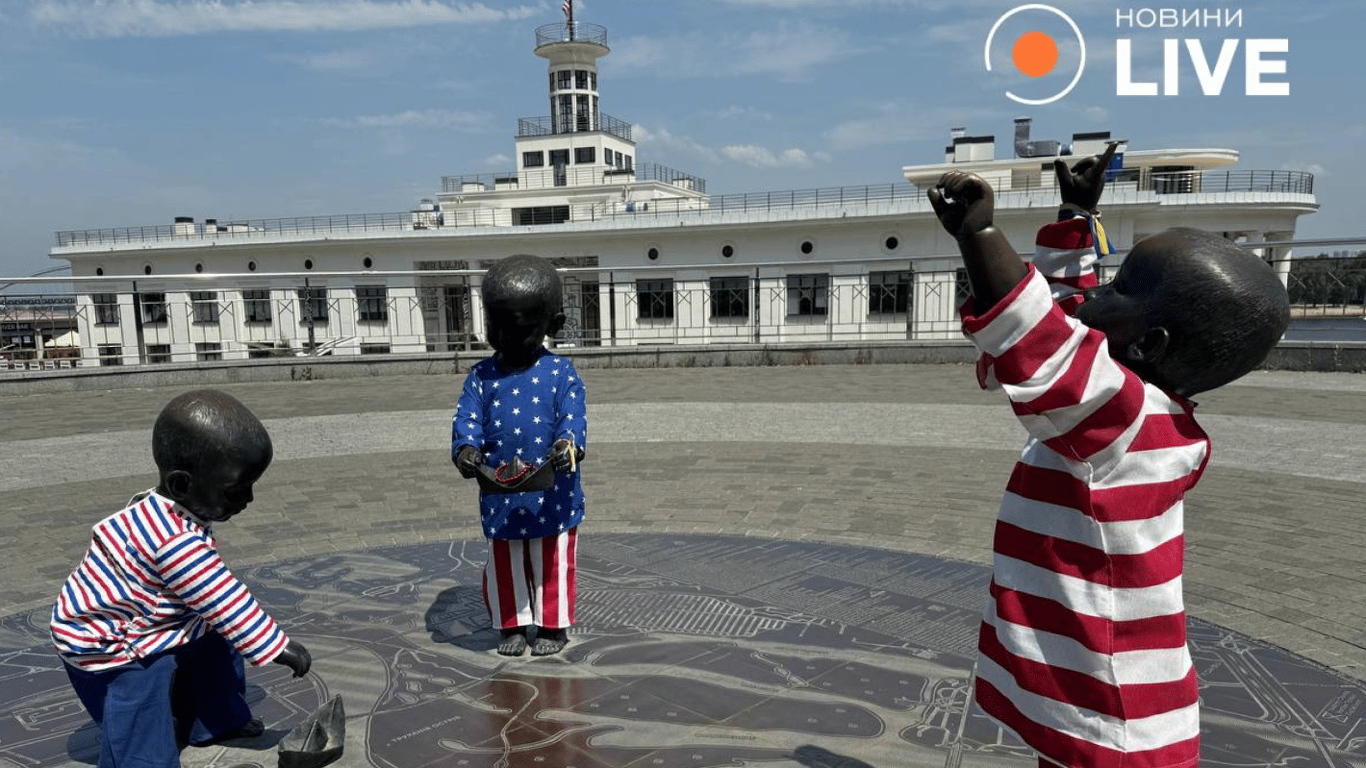 Малюків-засновників Києва переодягли в нове вбрання під колір американського прапора. Костюми для пам'ятників є символічними адже у четвер, 4 липня, у США відзначають День незалежності.
