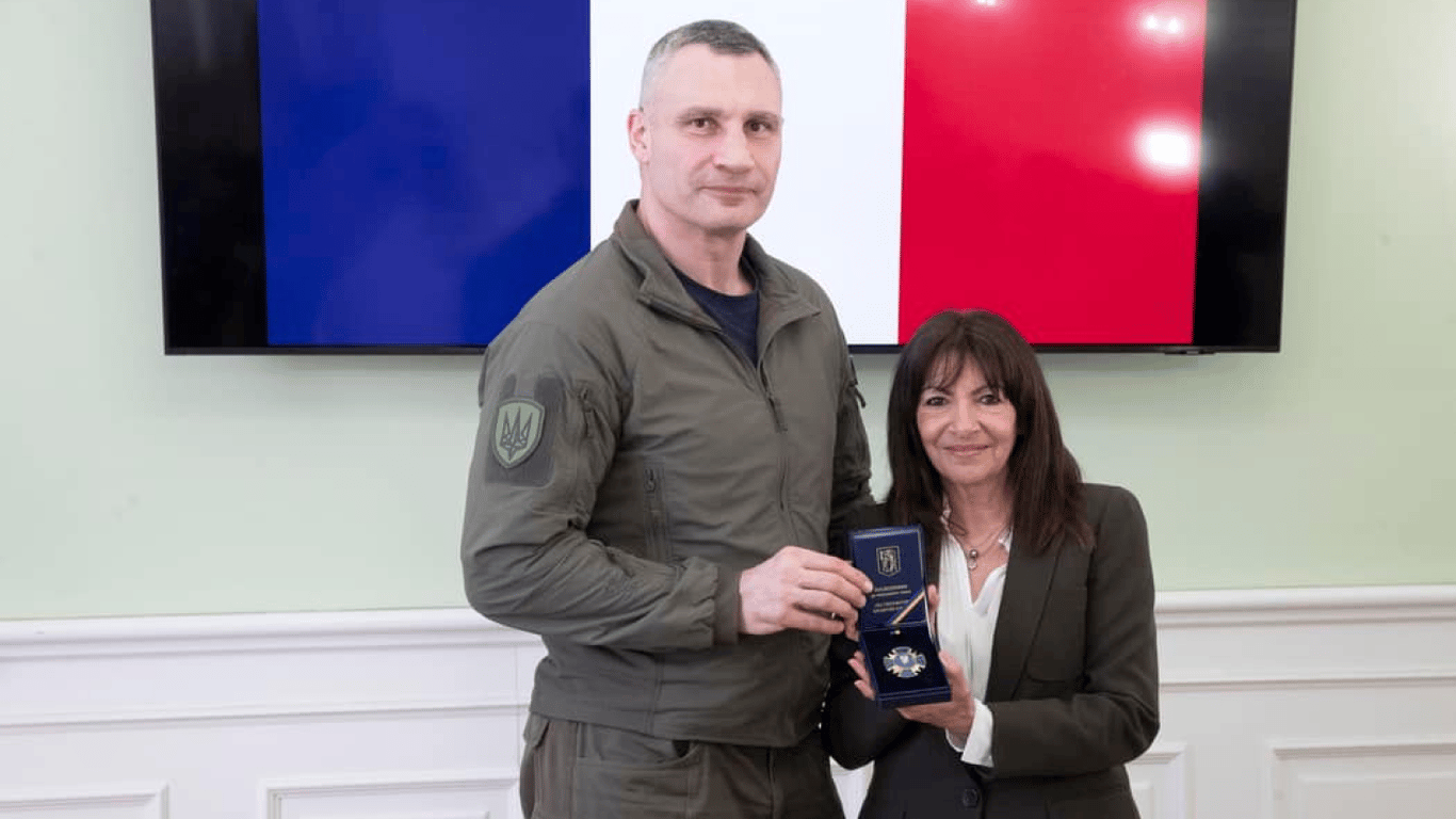 "Вручив Анн Ідальго відзнаку Київського міського голови — нагрудний знак "За сприяння обороні Києва". Адже з перших днів повномасштабної війни мерія Парижа надсилала гуманітарну допомогу, а також генератори, інше обладнання, яке було вкрай необхідним", — написав на своїй сторінці Віталій Кличко.