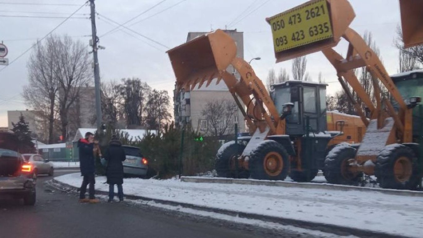 Ранок 22 грудня в Києві ознаменувався дорожньо-транспортною пригодою на Борщагівці. На Кільцевій дорозі легковий автомобіль врізався в ялинковий базар.