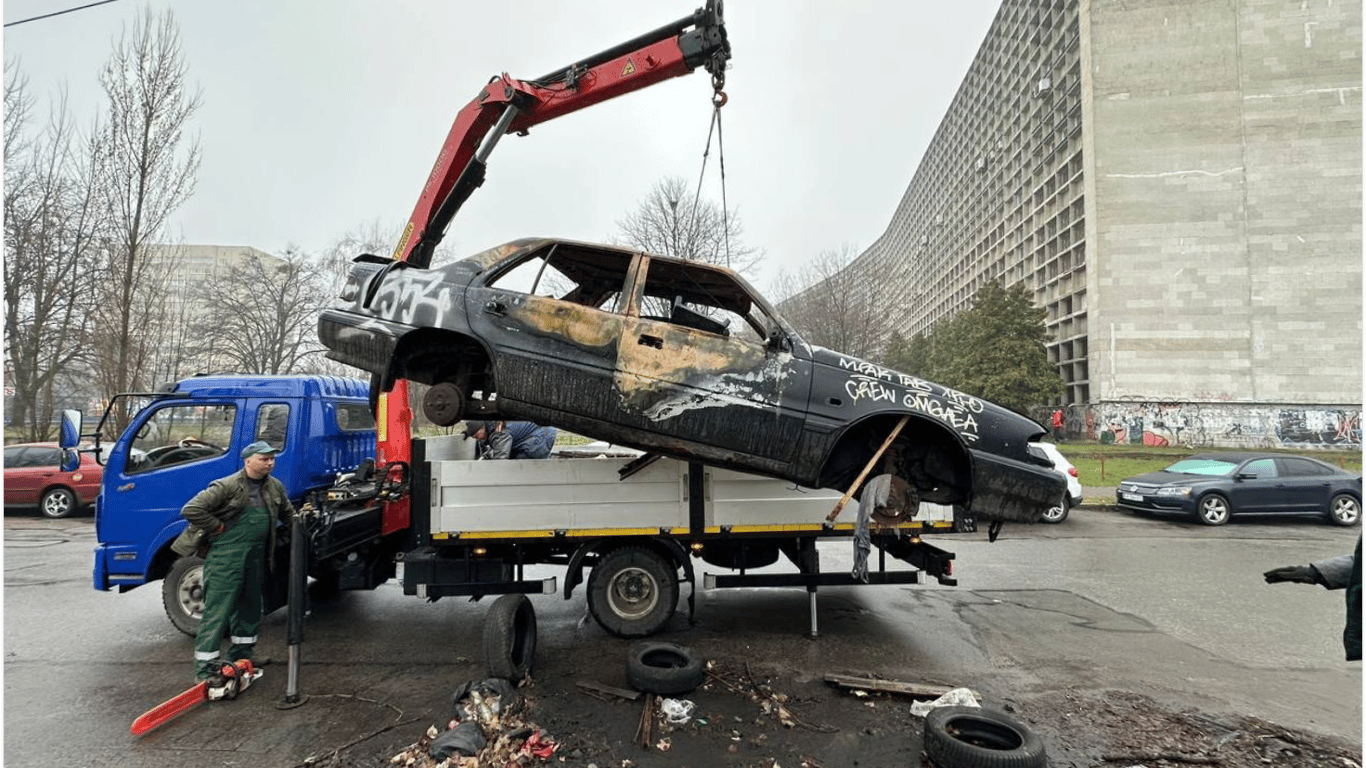 Очищення Києва від закинутих авто. Фото: КМВАОчищення Києва від закинутих авто. Фото: КМВА
