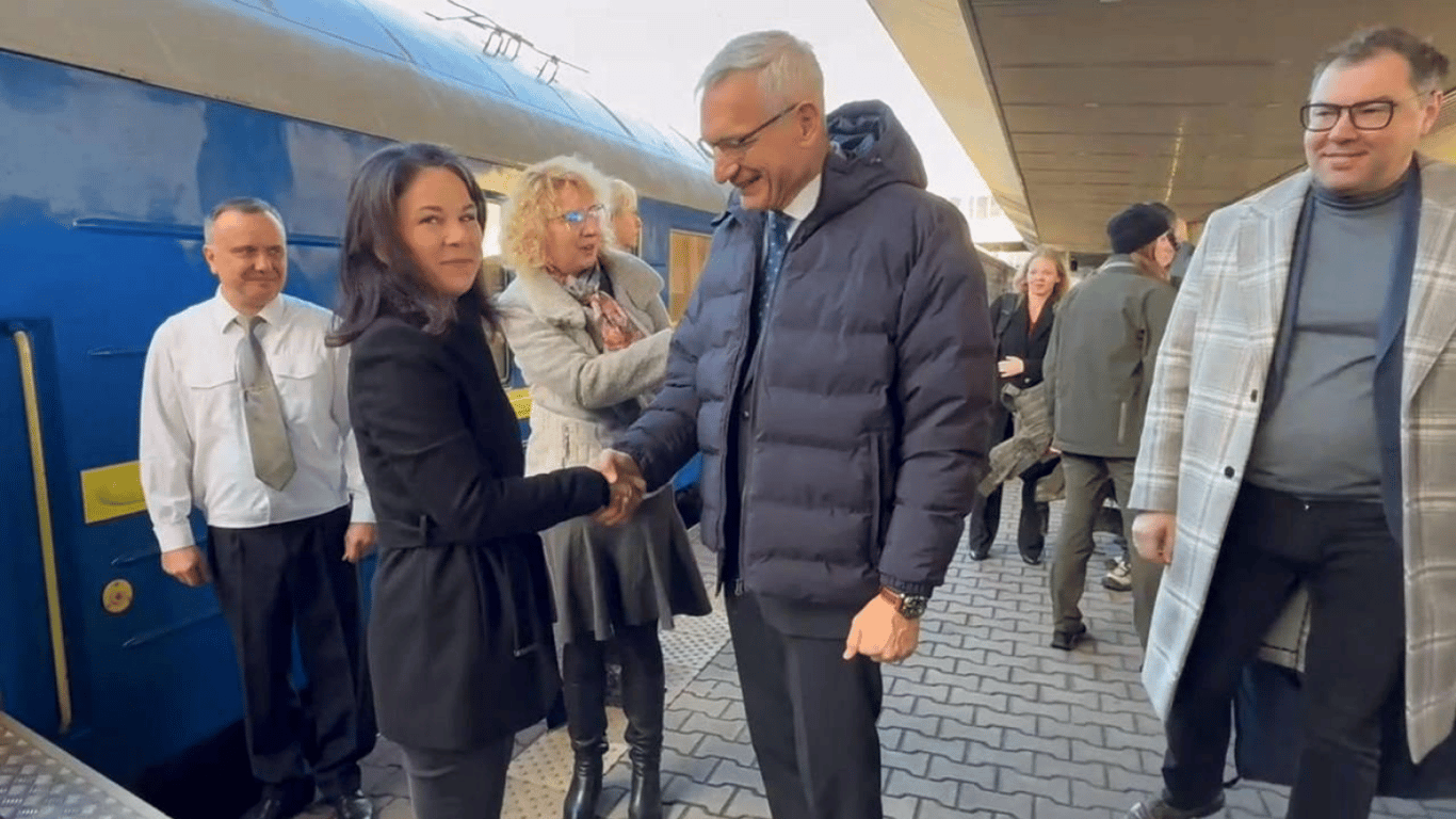 Анналена Бербок на вокзале в Киеве. Фото: скриншот с видео
