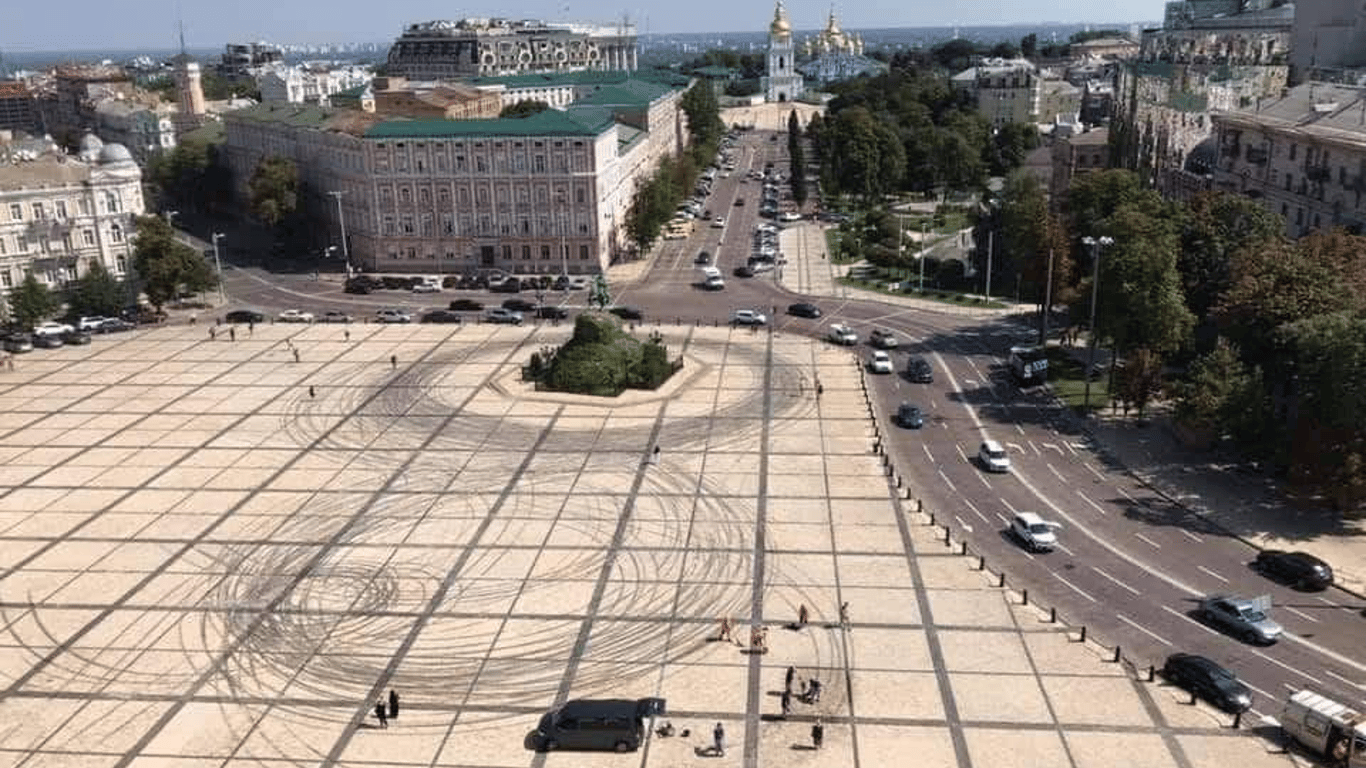 Во вторник, 10 августа, в историческом центре Киева на Софийской площади состоялись рекламные съемки. В Сети показали, как следы автомобильных колес значительно загрязнили покрытие на исторической площади Киева.