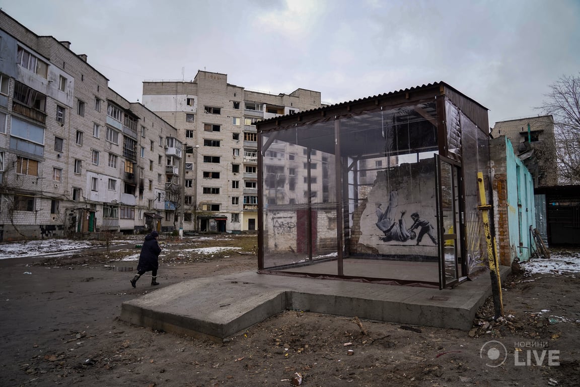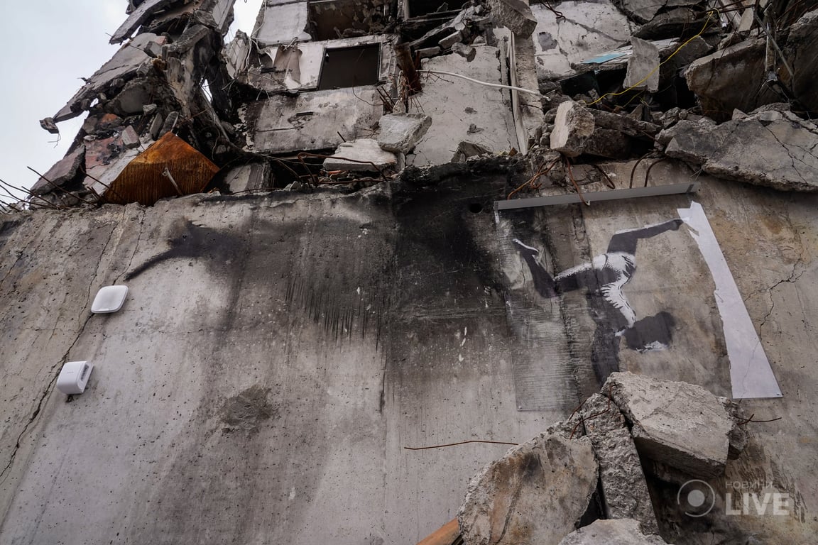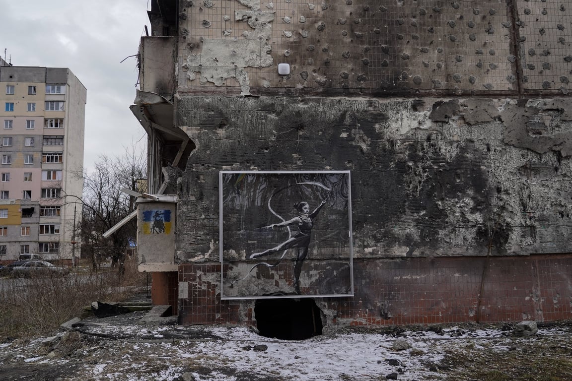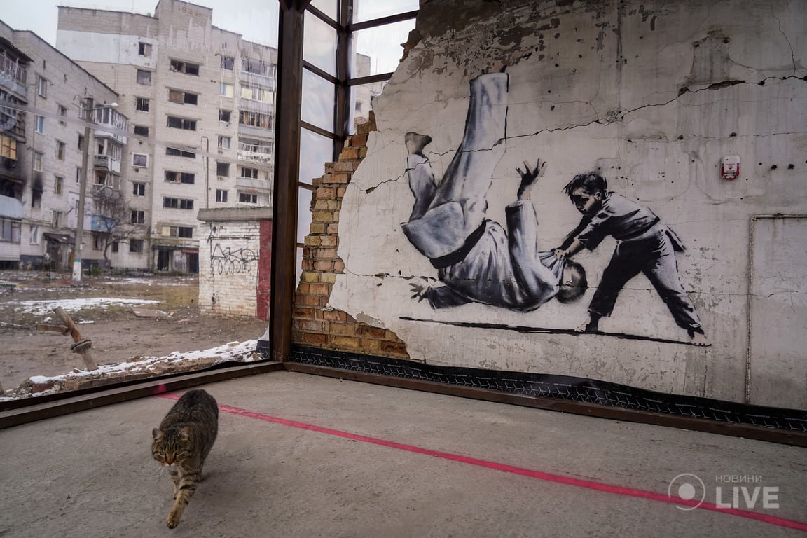 Всемирно известный уличный художник Бэнкси появился в украинских городах осенью 2022 года. Его черно-белые рисунки были незаметны для людей на стенах сгоревших домов, уничтоженных от авиабомб, пока в официальном Instagram художника не появилась надпись — Borodyanka, Ukraine.