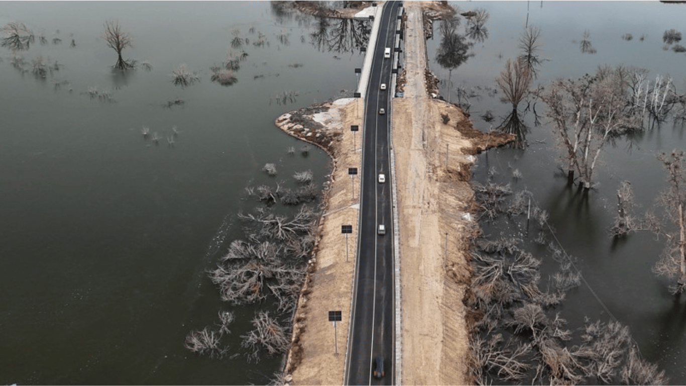 По его словам, новый железобетонный мост протяженностью 156 метров имеет две полосы движения по 3,75 метра.