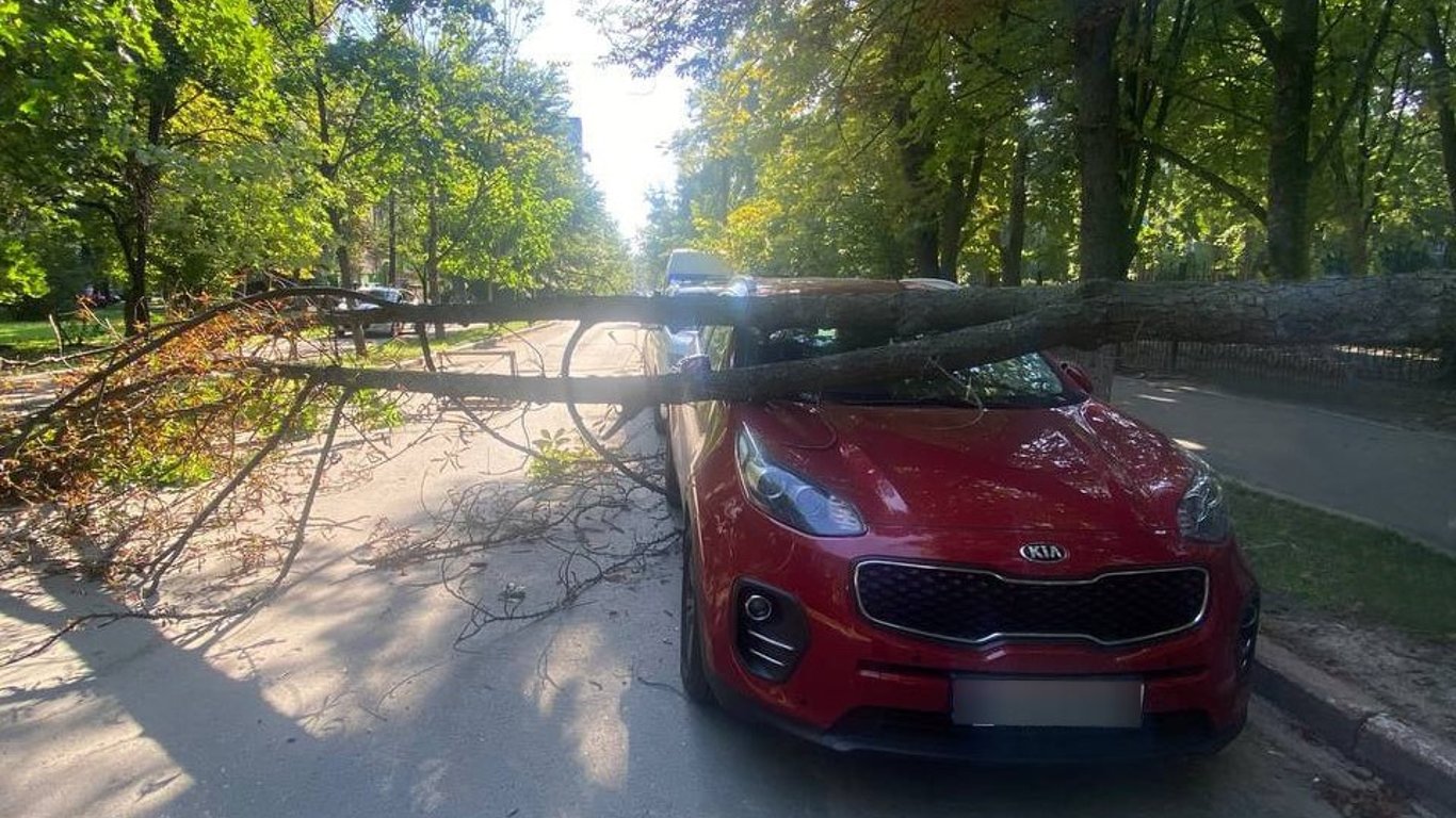 Дерево упало на автомобиль. Фото: Патрульная полиция Киева