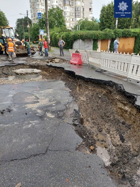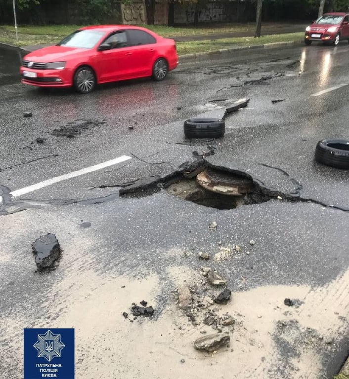Также дорожное покрытие разрушилось из-за непогоды на улицах живописной и Верховинной. Там в асфальте появилась большая пропасть. Движение на улицах перекрыто, на месте работает ШЕУ.