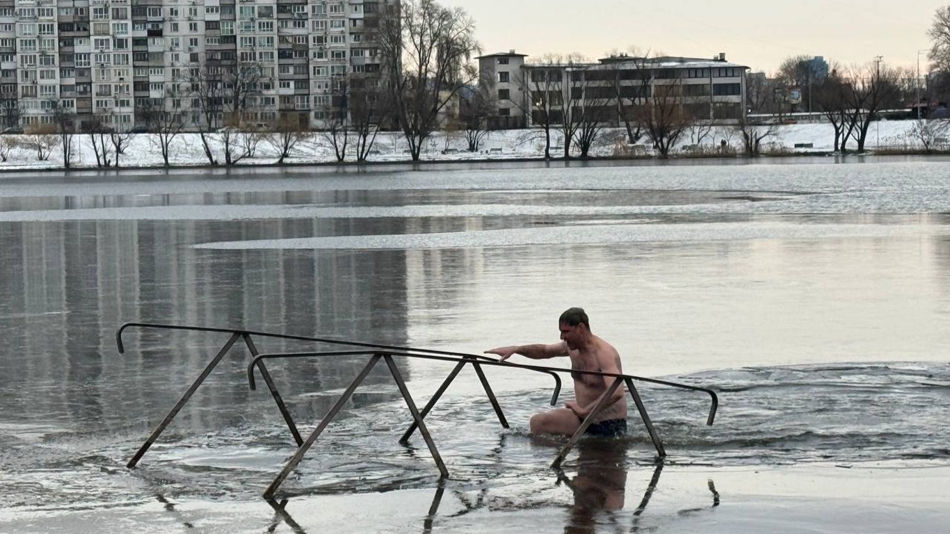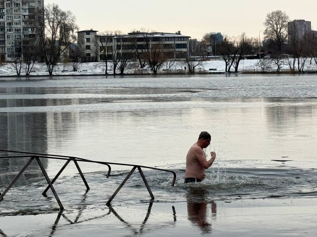 Сегодня, 6 января, в честь праздника Крещения граждане страны почтили традицию и совершили праздничные купания на одном из крупнейших в столице озере Тельбин, расположенном на Березняках, в Днепровском районе Киева.