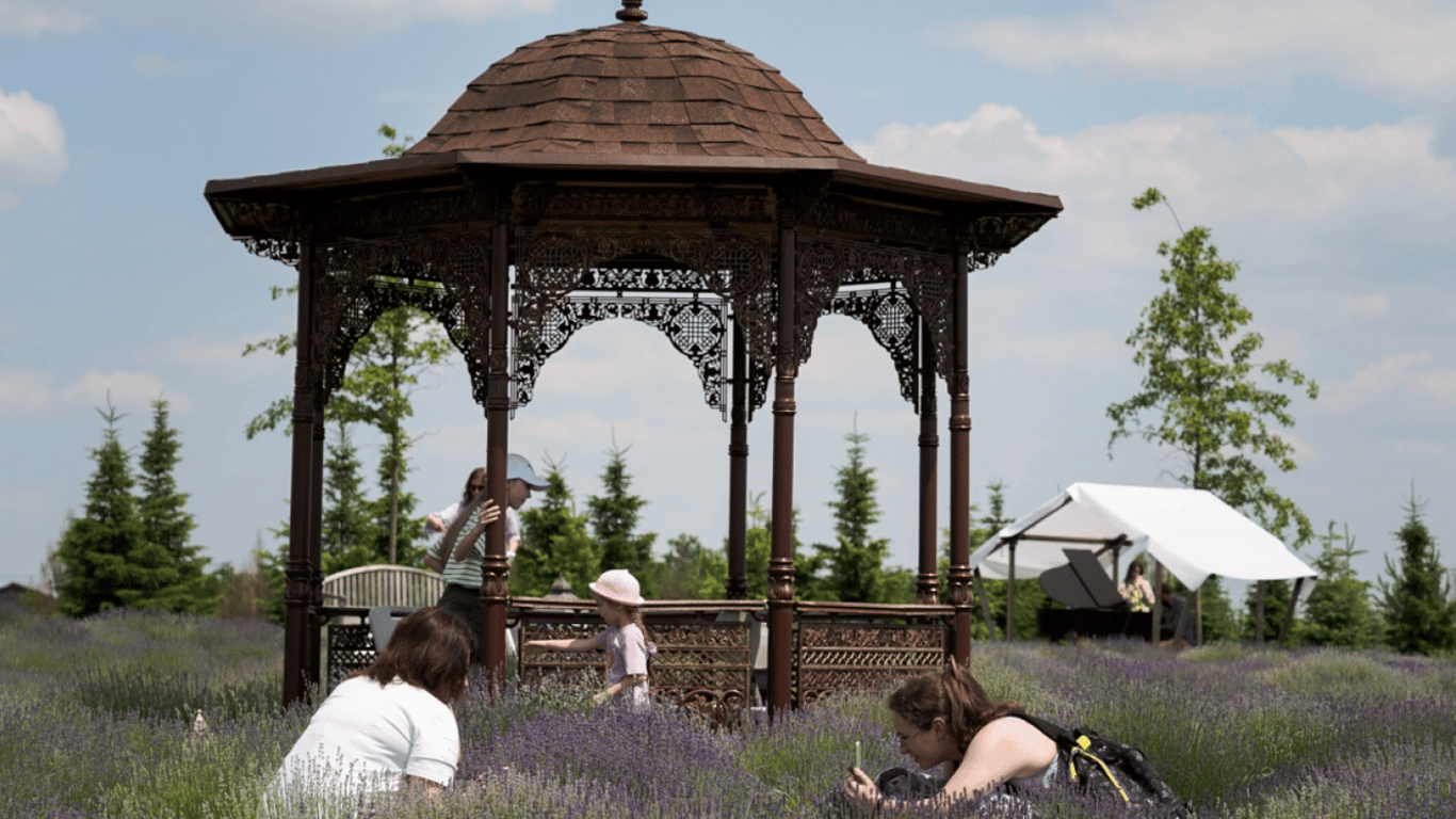 Для посетителей доступно четыре уникальные лавандовые площадки с пятью разнообразными сортами лаванды, отобранными с особым вниманием в течение двух лет. Первый уголок удивит своим морем из 10 тысяч кустов узколистной лаванды, где среди зарослей уютно расположилась коричневая беседка. Фотозоны с гигантскими фонарями и мольбертом усилят впечатления от волшебного прованского пейзажа.