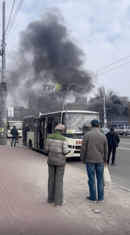 Дым на Шулявке. Фото: TelegramСтолб дыма в Киеве. Фото: Telegram