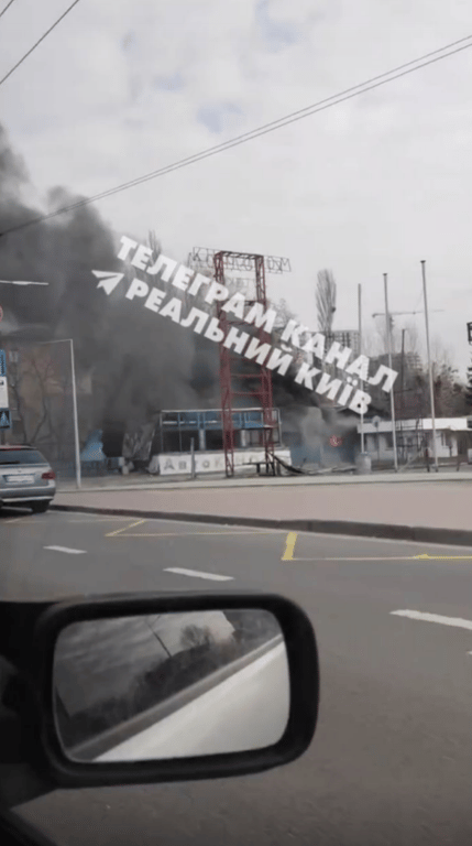 В Киеве вблизи станции метро "Шулявская" виден столб дыма. Пока нельзя точно сказать, что именно горит.