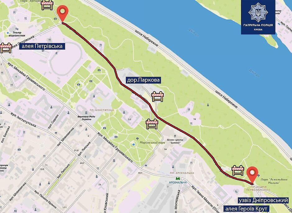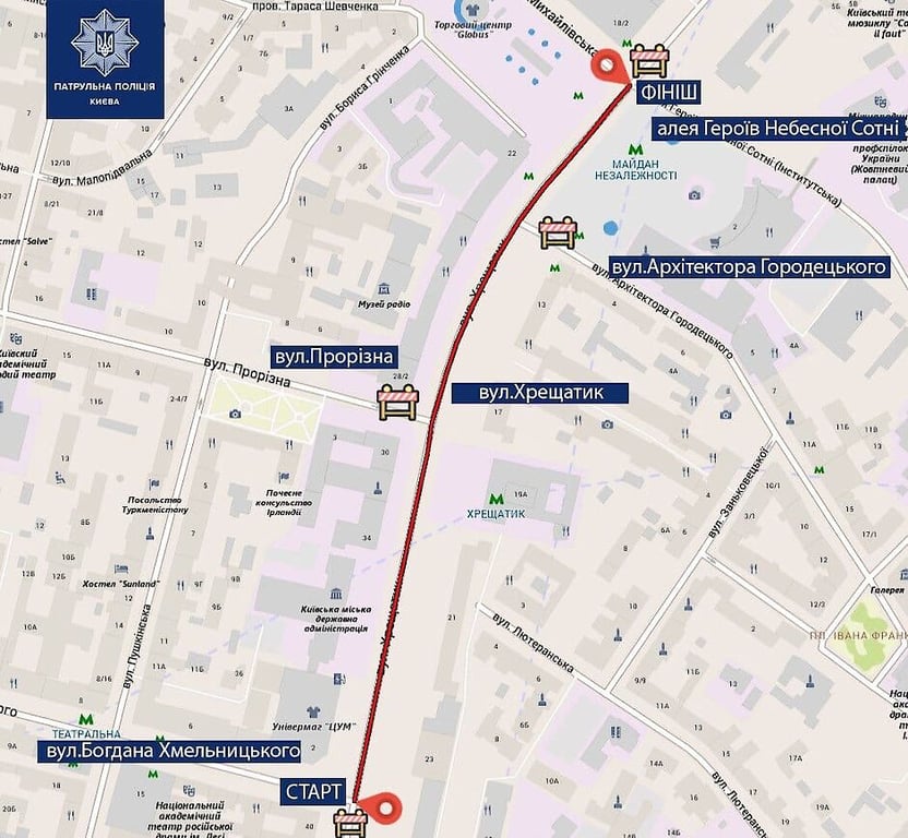 26 июня с 12:00 до 16:00 перекроют улицу Крещатик от Майдана Независимости до улицы Богдана Хмельницкого и въезды с прилегающих улиц.