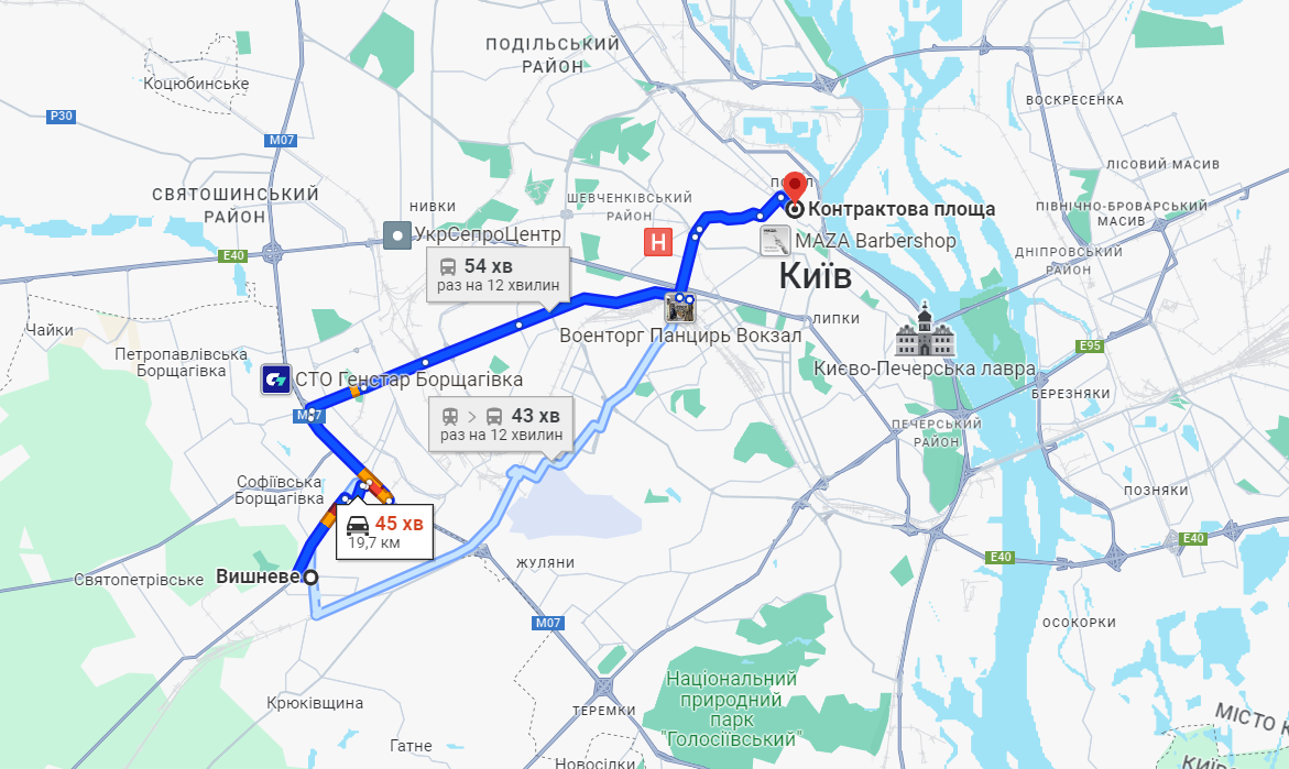 Небольшое скопление автомобилей может быть на улице Киевской и Кольцевой дороге, если ехать с Вишневого. Однако это не влияет на интенсивность движения авто.
