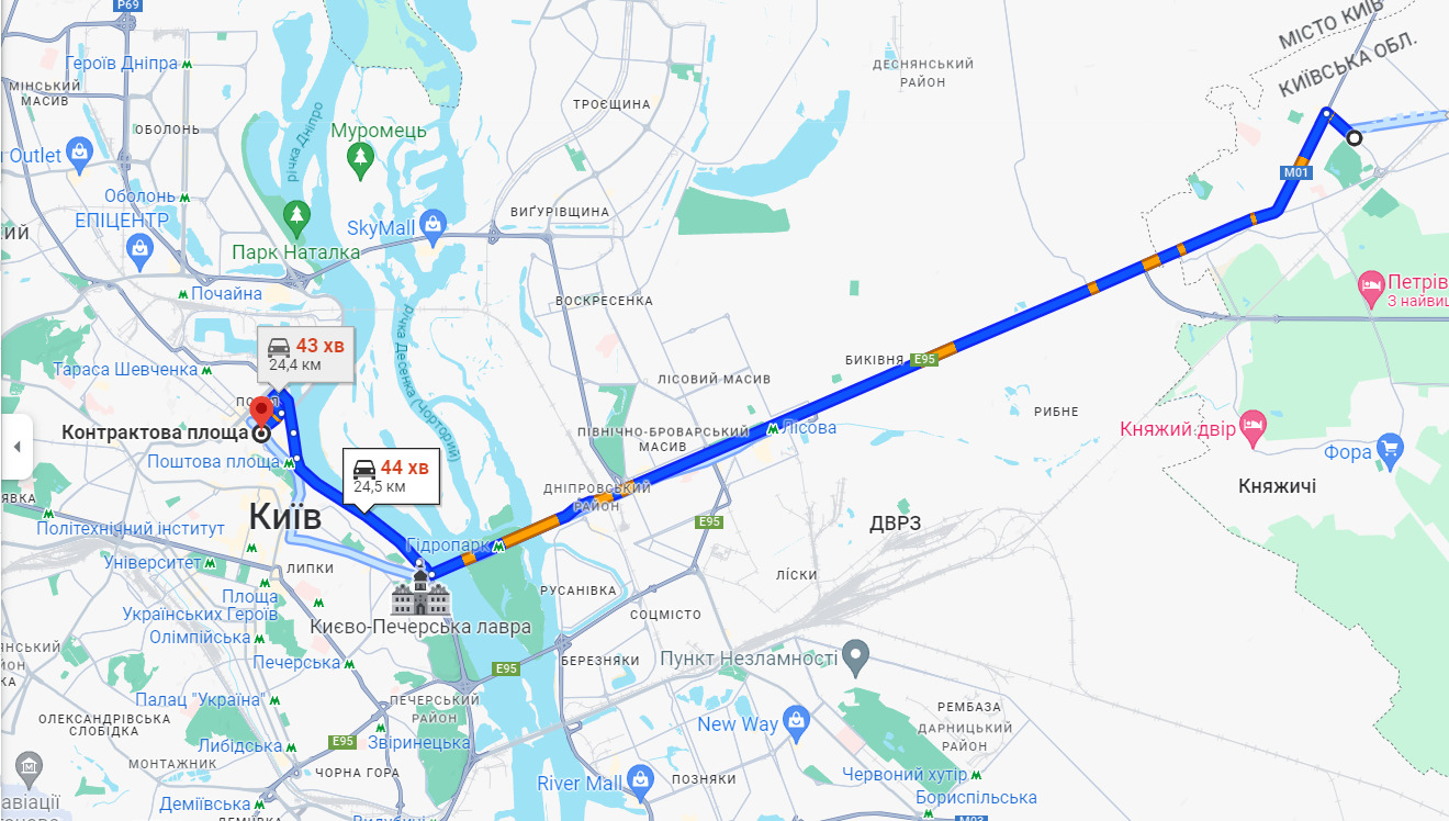 Пробки на въезд в Киев 3 октября. Фото: Google Maps