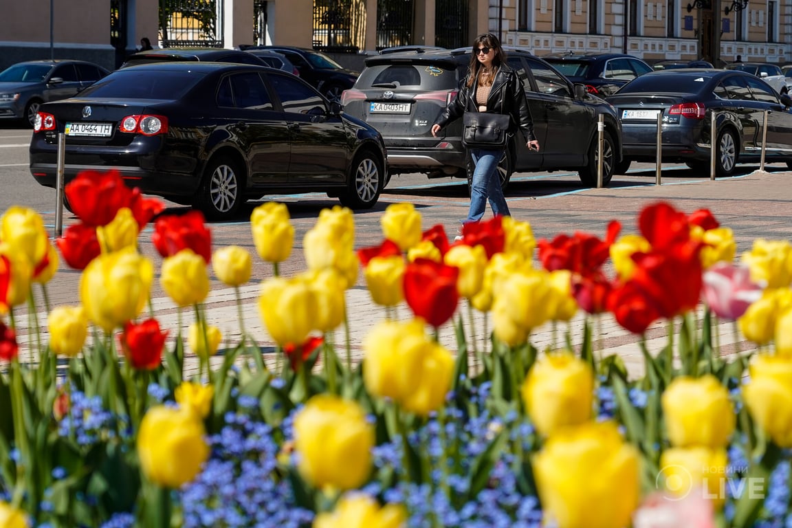 Тюльпани біля Будинку вчителя в Києві. Фото: Новини.LIVE