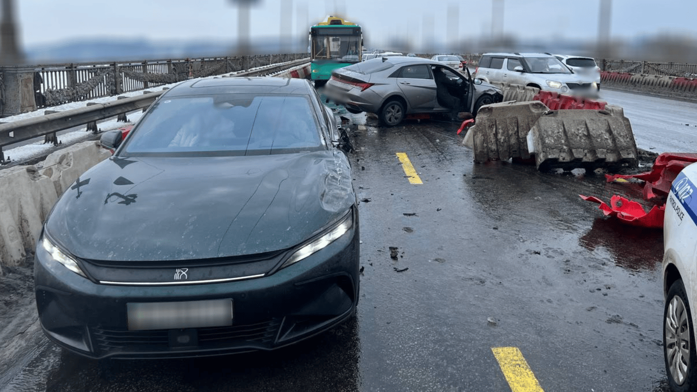 Зазначається, що на мосту Патона зіткнулися три авто, одне з яких відкинуло на роздільні бар'єри.
