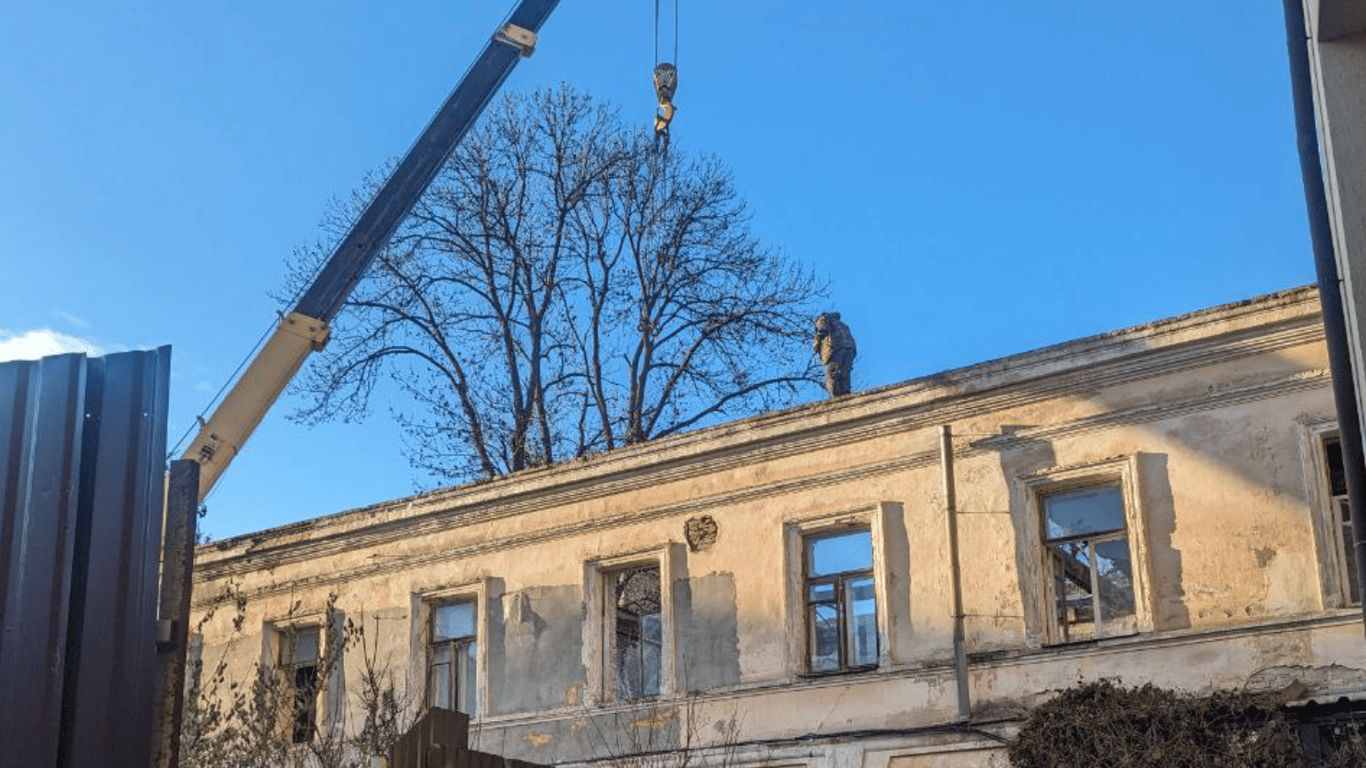 Демонтаж даху в одній з келій НаУКМА. Фото: Спадщина/Telegram