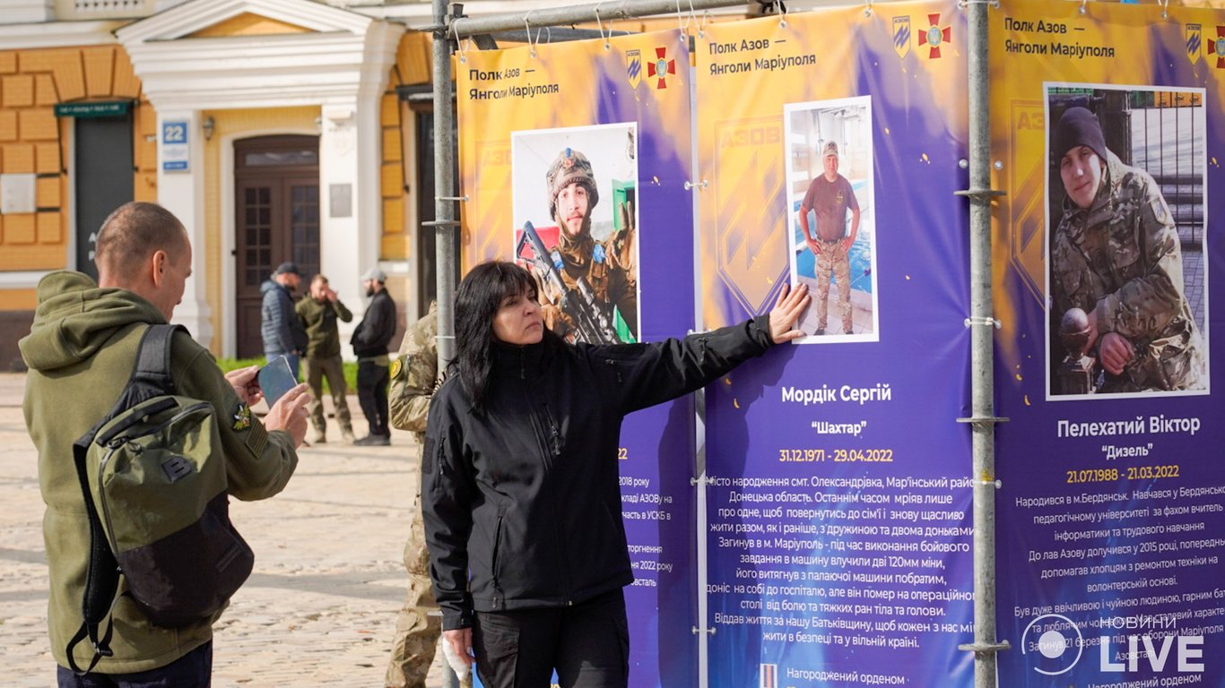 У Києві на Софійській площі 14 жовтня об 11:00 відкрили вуличну виставку "Полк Азов — Янголи Маріуполя". Вона присвячена захисникам і захисницям із підрозділу "Азов" Національної гвардії України, які віддали свої життя, обороняючи Маріуполь від російських загарбників.