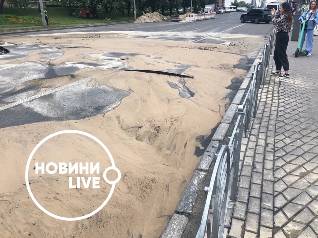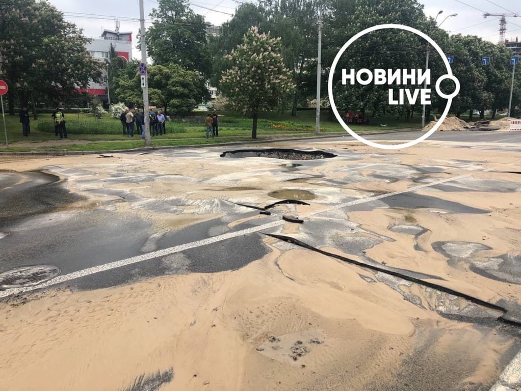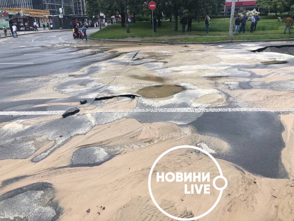Відомо, що це сталося по вулиці Антоновича, 176. Там посеред проїзної частини прорвало тепломережу. В результаті дорогу почало заливати водою, а пізніше утворилася діра в асфальті діаметром чотири метри.