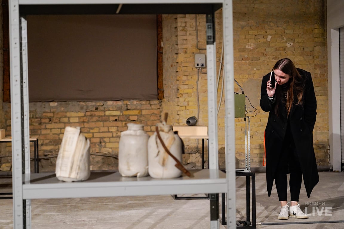 Відвідувачі виставки "Форми присутності" в "Мистецькому арсеналі" фотографують арт-об'єкти на телефон. Фото: Новини.LIVE