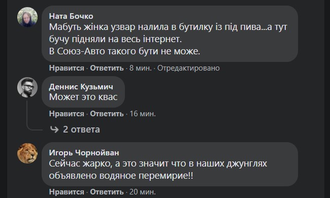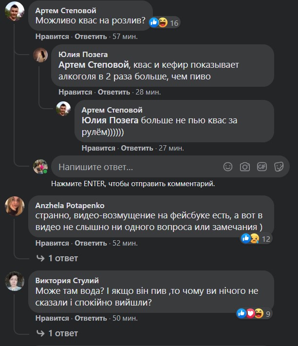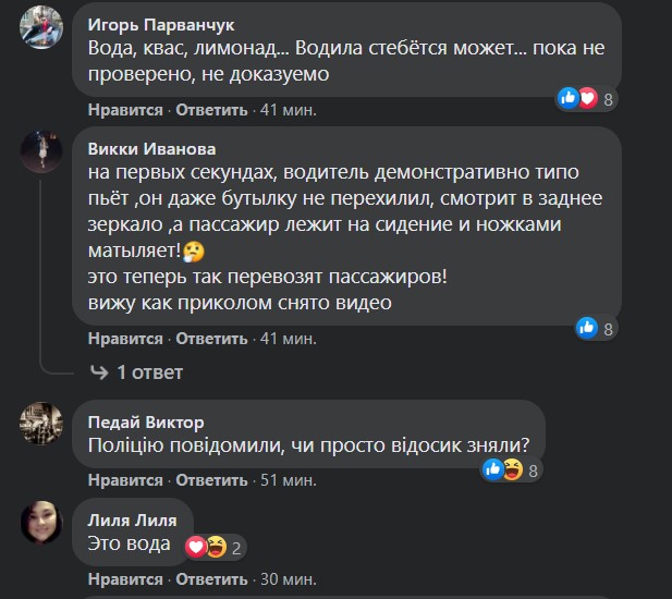Відео викликало обурення у містян в коментарях під дописом, проте знайшлись й ті, хто стали на захист водія, мовляв, у пляшці з-під пива може міститись інша рідина. Приміром, квас або узвар.