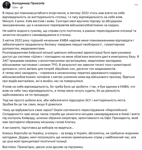 Після вручення підозри Прокопів заявив у Facebook, що не відкидає звинувачень, але вважає їх частиною підготовки до виборів.
